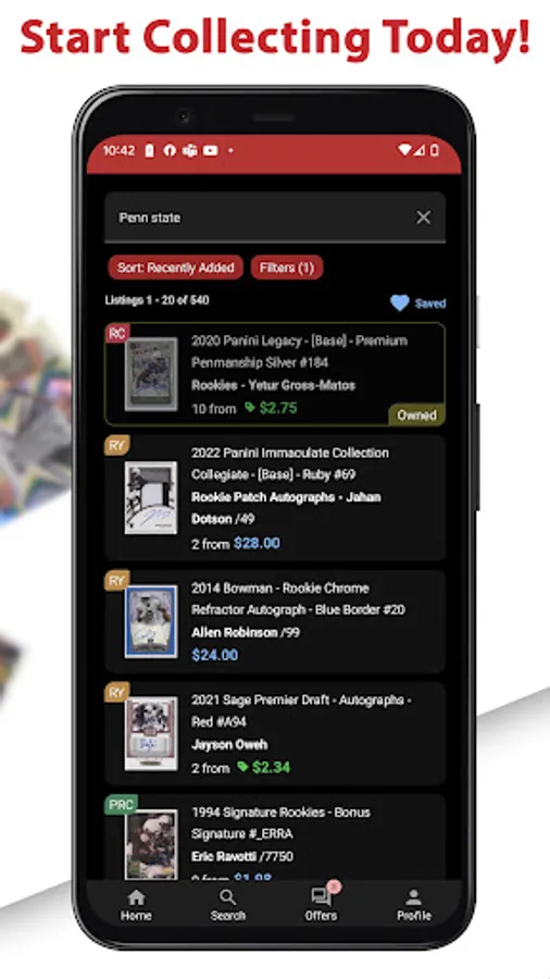 Recently Viewed- Quickly and easily browse cards that you have recently viewed with this dedicated section on our app.