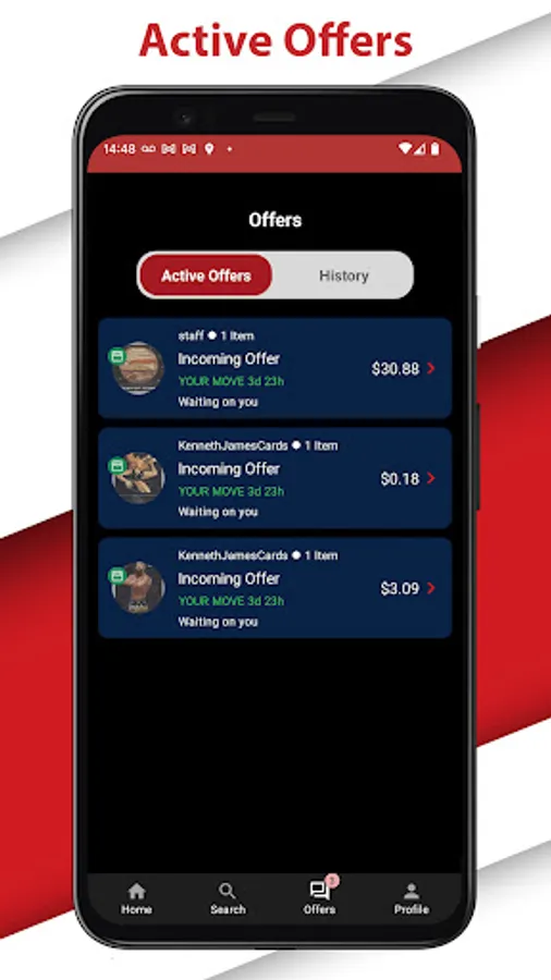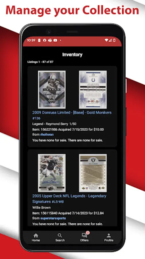 Manage Offers- Incoming and outgoing offers are clearly displayed and are easily monitored from our Manage Offers section. Send offers and navigate deals!