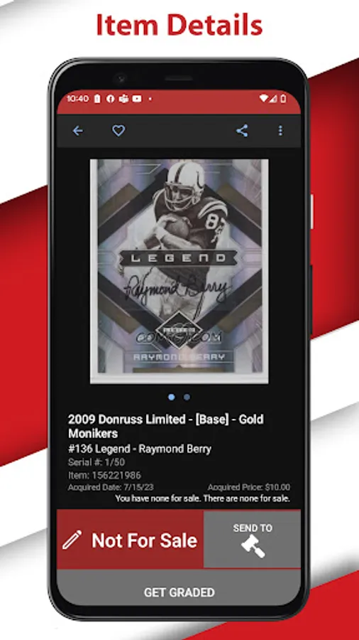 Control your inventory from our centralized Inventory Manager page. Update the pricing of a card instantly or submit a card already in your COMC account to Third-Party grading from this page. Review all cards in your account and check the list price of your items against other copies for sale.
