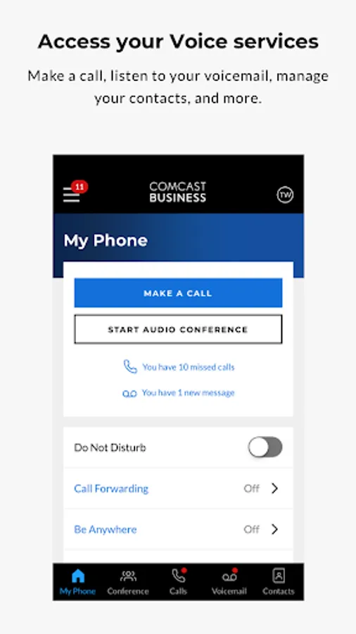 With the Comcast Business App, you can: