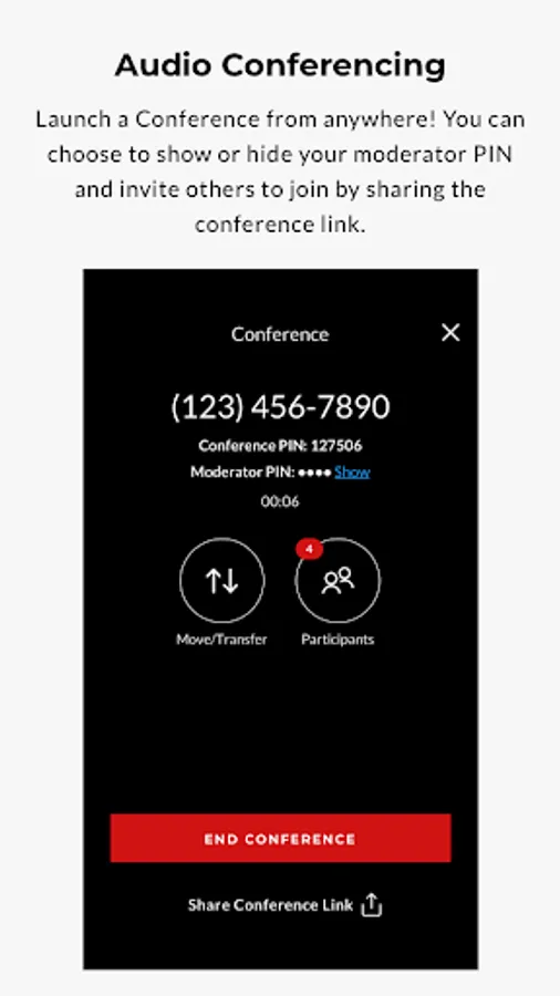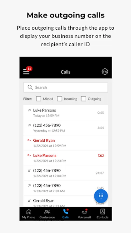 • Make outgoing calls through the app to display your business phone number on caller IDs