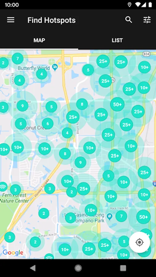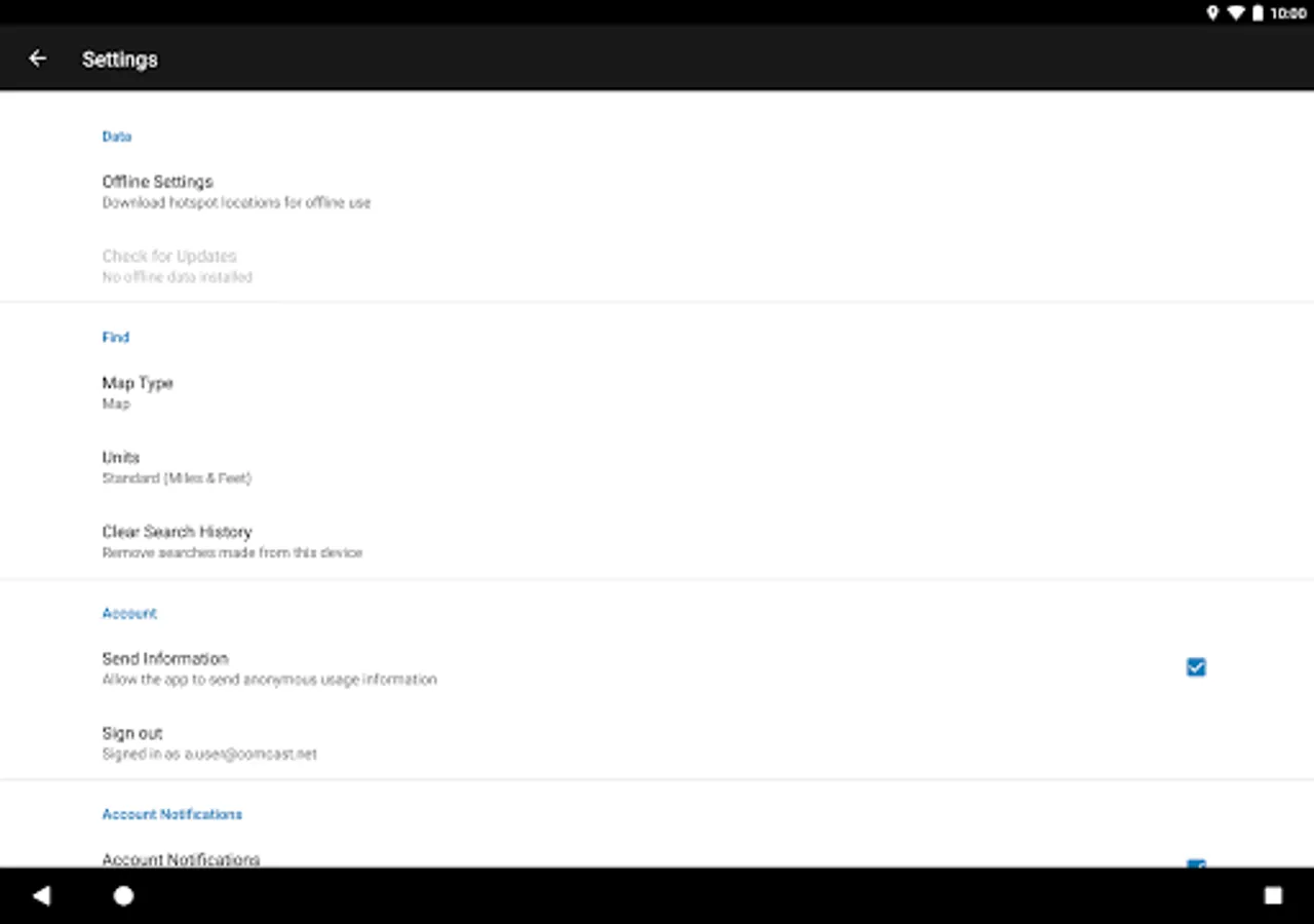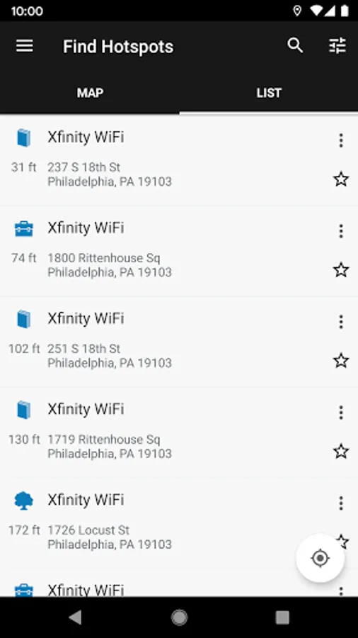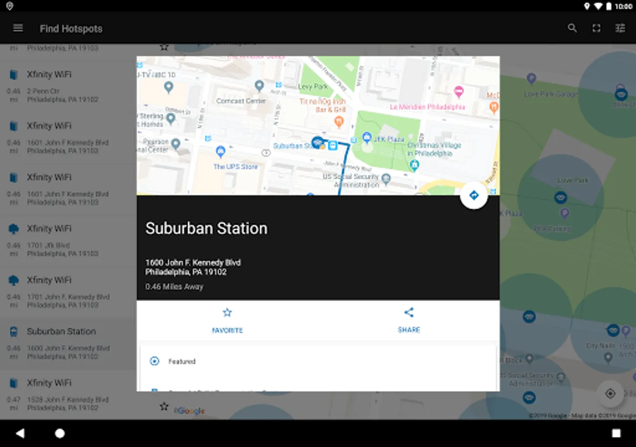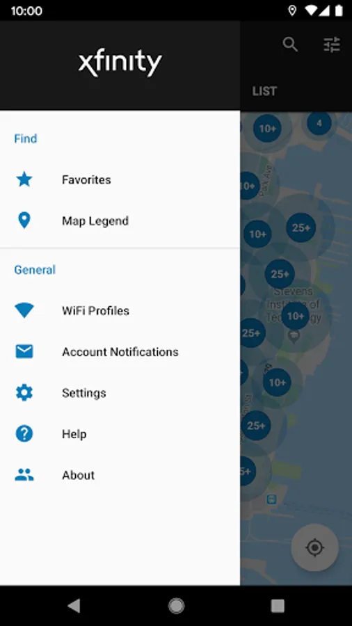 • "Near Me" locates all nearby Xfinity WiFi hotspots