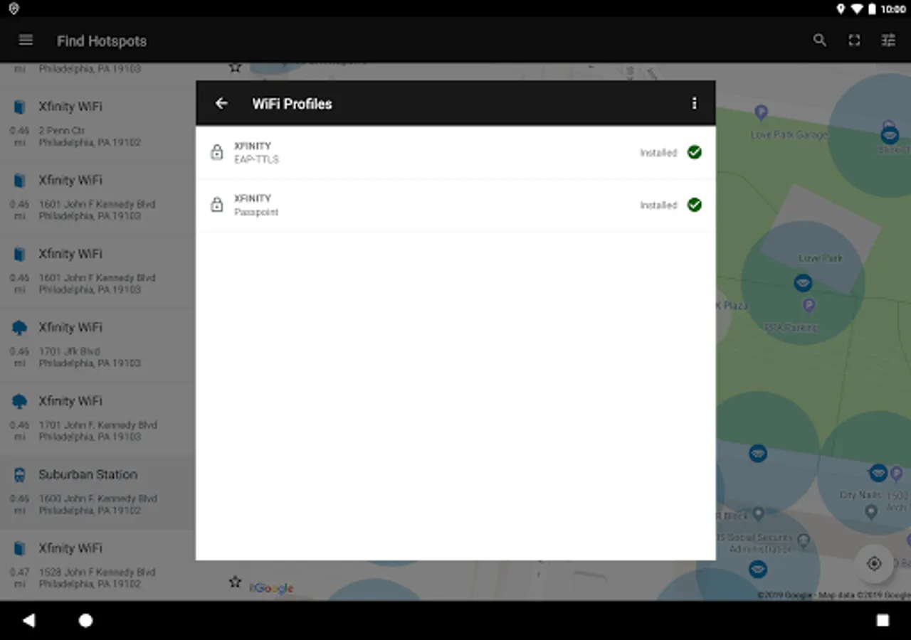 The Xfinity WiFi Hotspots app for Android is available exclusively for Xfinity Internet customers and contains WiFi security features to improve your safety and privacy while using certain Xfinity WiFi hotspots around town. The app enables your device to automatically connect you to Xfinity WiFi hotspots when in range. It makes it easy to find Xfinity WiFi hotspots with enhanced search tools and directions. This app is included with your Xfinity Internet service.