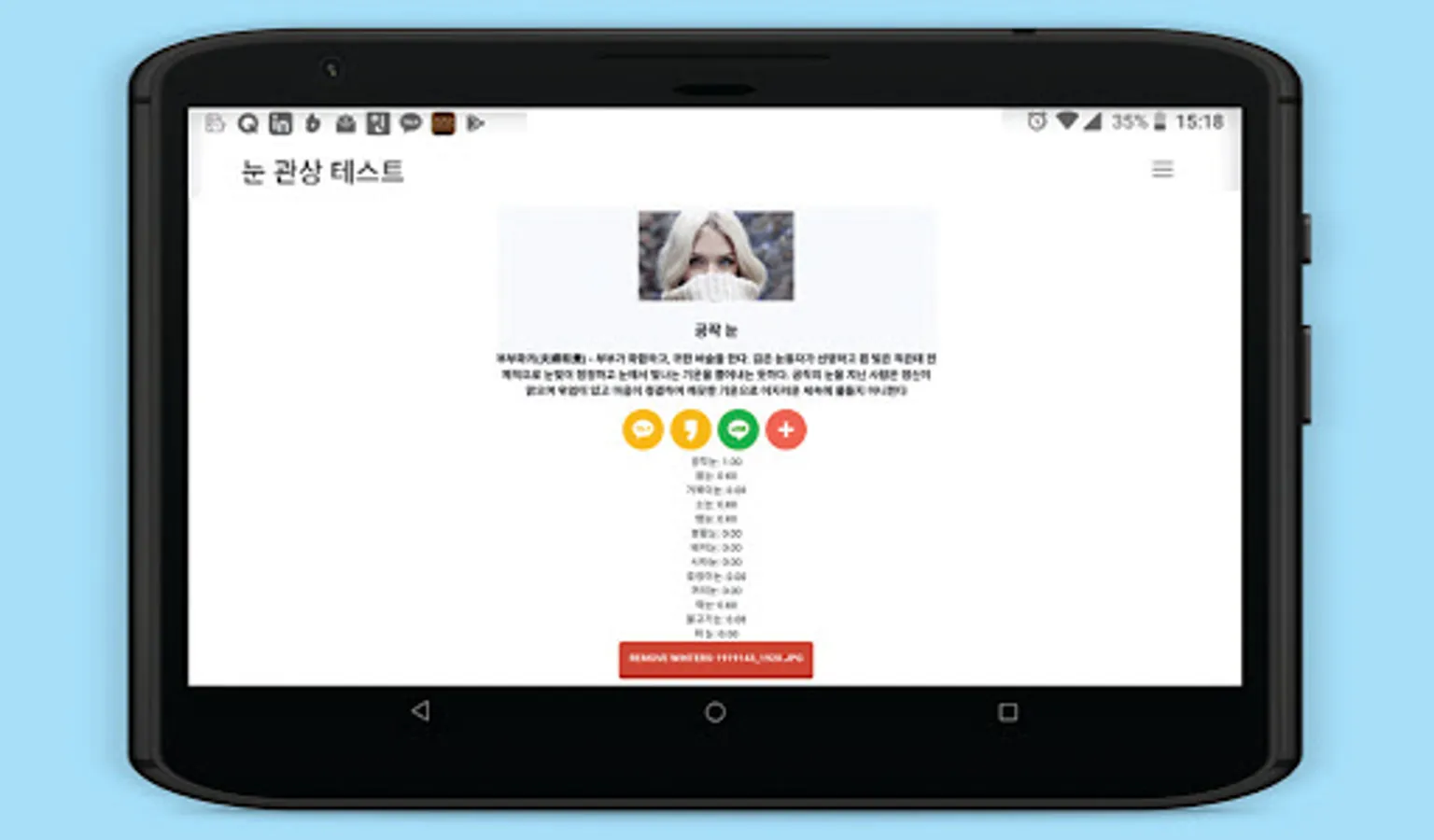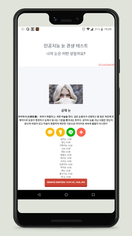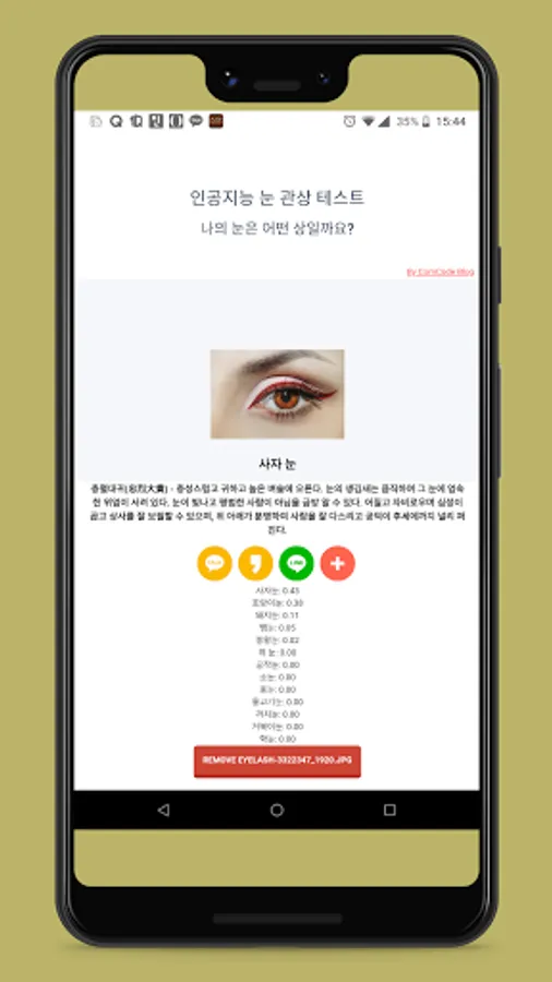 We will tell you the shape of the eye that is as close as possible based on your own judgment. I can't say it's absolutely accurate, and I'd appreciate it if you enjoy it. Also, as the algorithm is updated continuously, it is expected to further improve the learning ability of AI. When uploading a picture or taking a picture with a camera, you should have as many faces as possible. Even if it is a picture of a shape other than a face, the result is derived, but it is meaningless to inform you of a random result that does not apply.