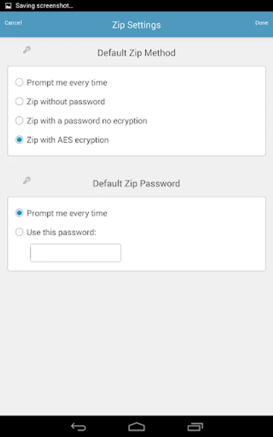 - Compress files using a plain password or an 256 bit AES password encryption.