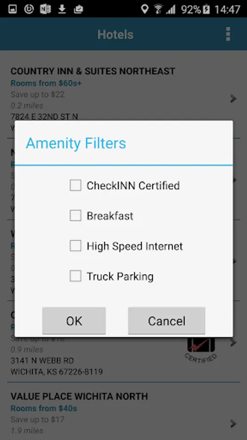 The application allows Comdata customers to easily find and map network hotels using their current GPS coordinates or city, state and zip. Users can view hotel details, thumbnail images and amenities, as well as filter hotels by truck parking and other options. Customers can map hotel results, toggle between a hotel list and map view, and route driving directions.