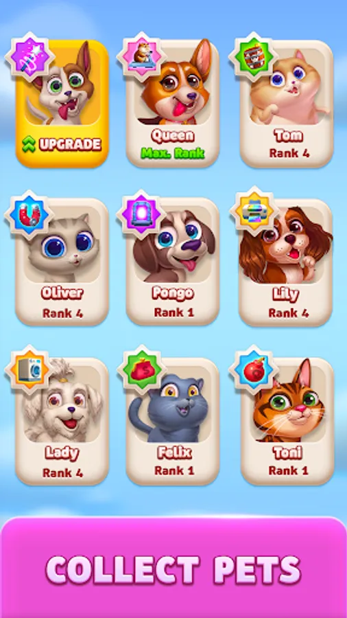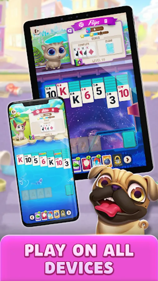 ♠️ Beat solitaire games to collect gems and use them to upgrade your pet’s powers. Powers can help you complete difficult levels.