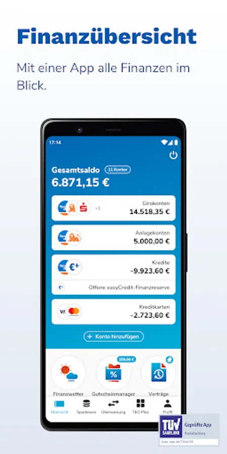 Use all multibanking functions with the free and secure finance app and benefit from contract managers, insurance managers and attractive TEO Plus offers.