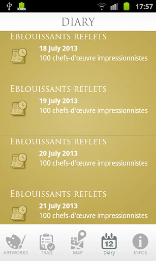 The Rouen Fine Arts Museum application presents the museum's major pieces. It features more than 60 art works with commentaries and original tour circuits. The commentaries and videos will help you approach the works from a fresh perspective. Using the "make up your own itinerary" feature, you can choose your favorite works and create your own individualized tour by means of the interactive plan. With the date book, keep abreast of what's happening in the museums.