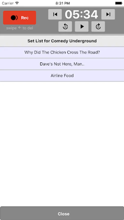 - Create set lists with ease, dragging and dropping jokes into place, and track their estimated length