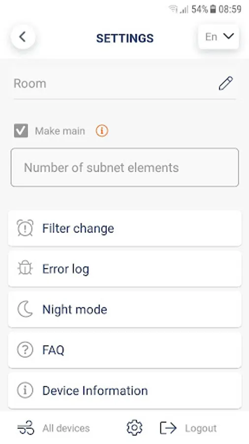 The Comeforta app will inform you about CO2 concentration in the room and remind you to replace the filter elements.
