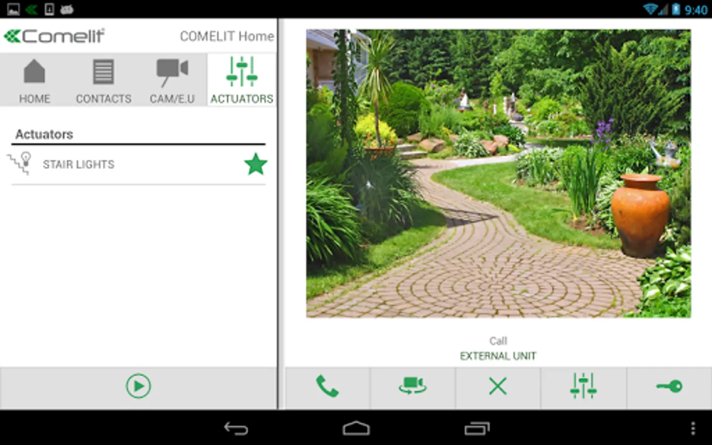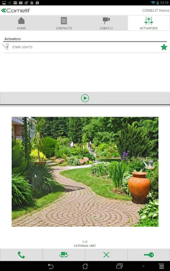 All video entry phone system functions are within easy reach on your smartphone or tablet. With ComelitVIP Remote you can communicate with the external unit, via the wifi network at home and by means of a data connection while you are on the move. In fact, ComelitVIP Remote allows you not only to receive audio and video calls from the external unit directly on your smartphone or tablet, but also to view images from cameras, activate actuators and make intercom calls to other internal devices. ComelitViP Remote implements a memovideo function for recording video from external unit or remote cameras. The multisite function can be used to receive audio-video calls from multiple different systems. ComelitVIP Remote is an exclusive opportunity for Comelit VIP system users. An apartment gateway device (art. 1456 and/or 1456S) or a building gateway device (art. 1456B), in addition to a WiFi modem, are needed to use ComelitVIP Remote.