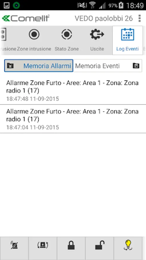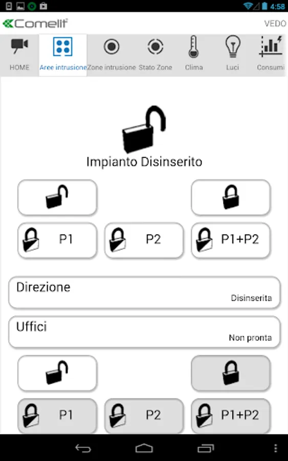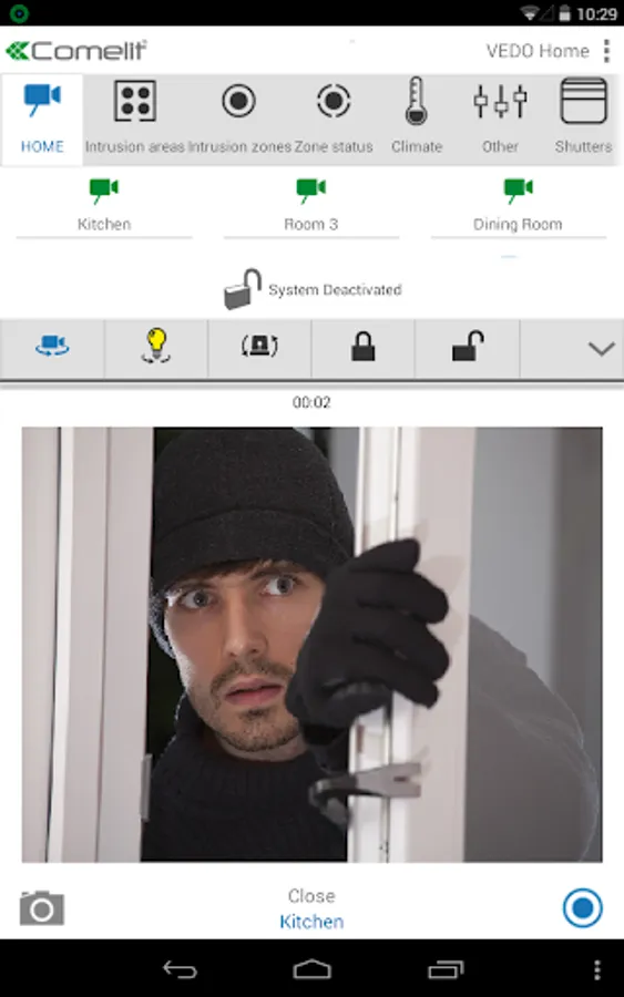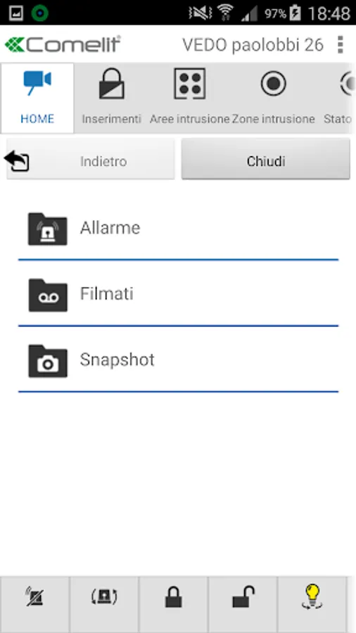 You are now able to access your Comelit VEDO intruder alarm systems from anywhere, view live images from the cameras, send the commands for the system management like :