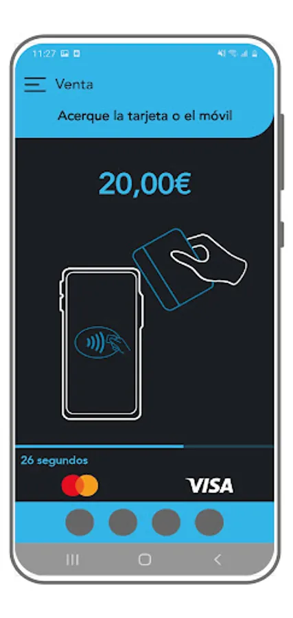 4. The customer must bring the card or mobile device closer to the NFC reader of the mobile, behind the smartphone, to make the payment.