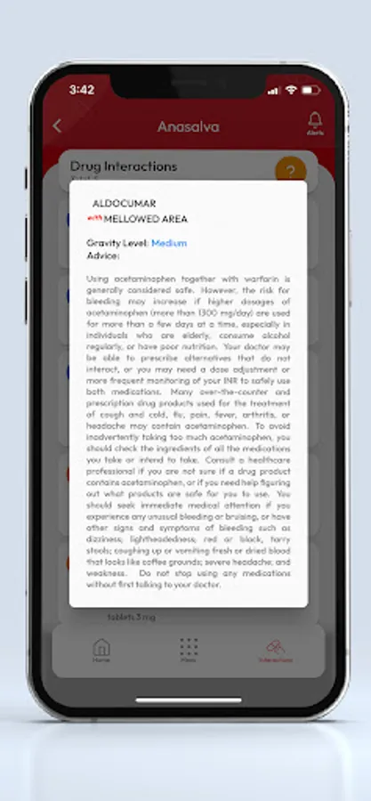 Among its many functionalities we can find some aimed at the study of their medications, adverse reactions, contraindications, risks and their interactions between active ingredients, drugs or food in a multiple way, providing the patient with technical explanations and health tips that help them to have a better control of their diseases and their life. All this with the aim of preventing and fighting against the third leading cause of death in the world, which is drug interactions.