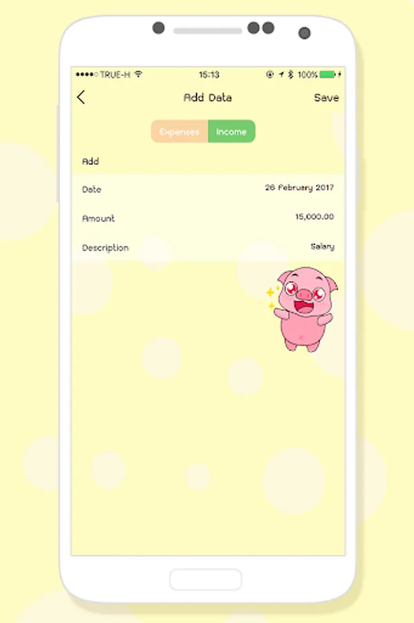 This app is a financial app. That helps you remember that. What do we spend each day? Each category summary What to pay for water, electricity bills, coffee costs, accommodation, home loan, etc., help us save as well. In addition, there are cute cartoon pigs to see the encouragement in the recording of expenses. Let's see that. This app will give you more money each month. And finally When we have discipline in finance, we will be rich, encourage everyone to do it every day and get rich.