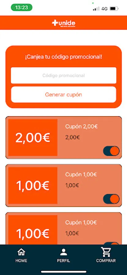 The + Unide app where you can find all your coupons to save on your purchase.