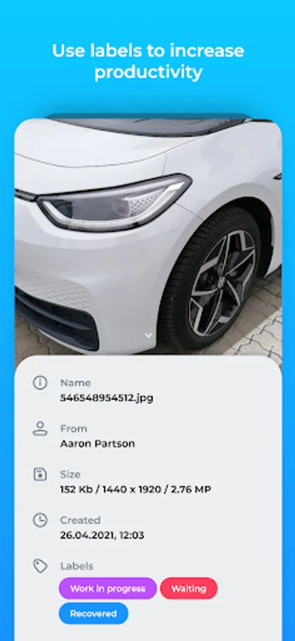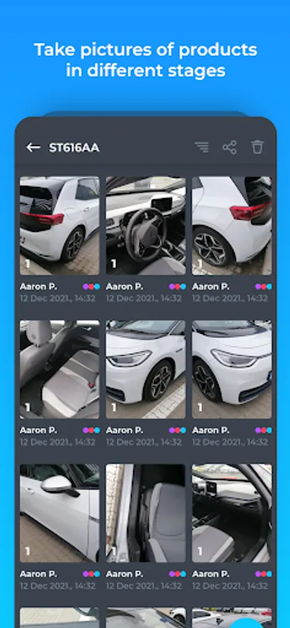 Any user can take pictures of products in different stages of the workflow and for any purpose: at reception, for warranty, for the interaction with insurance companies, etc..