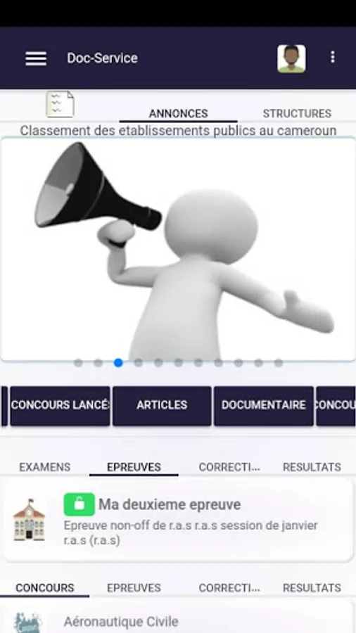 With DocService, subscribe to an exam, a competition, a class or a structural specialty (academic or not) and benefit from free access to all the associated documents. Also benefit in real time from associated announcements such as: the dates (launch, limit for submitting a file, taking the tests), places for submitting the file, places of composition, constitution of the file, information about it, the results ...