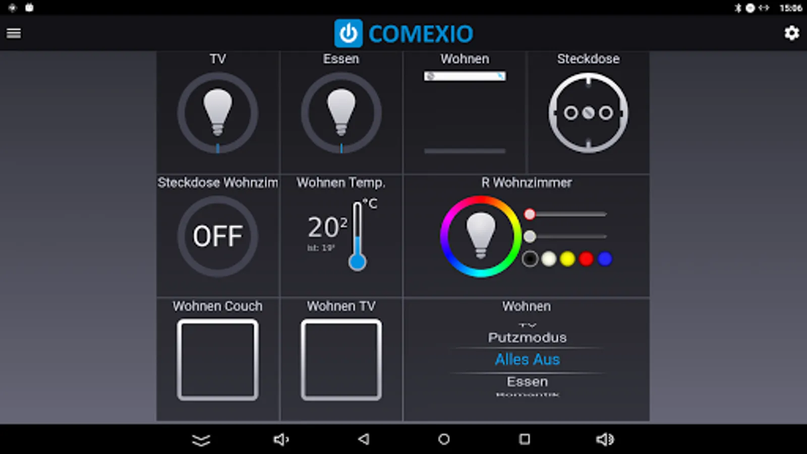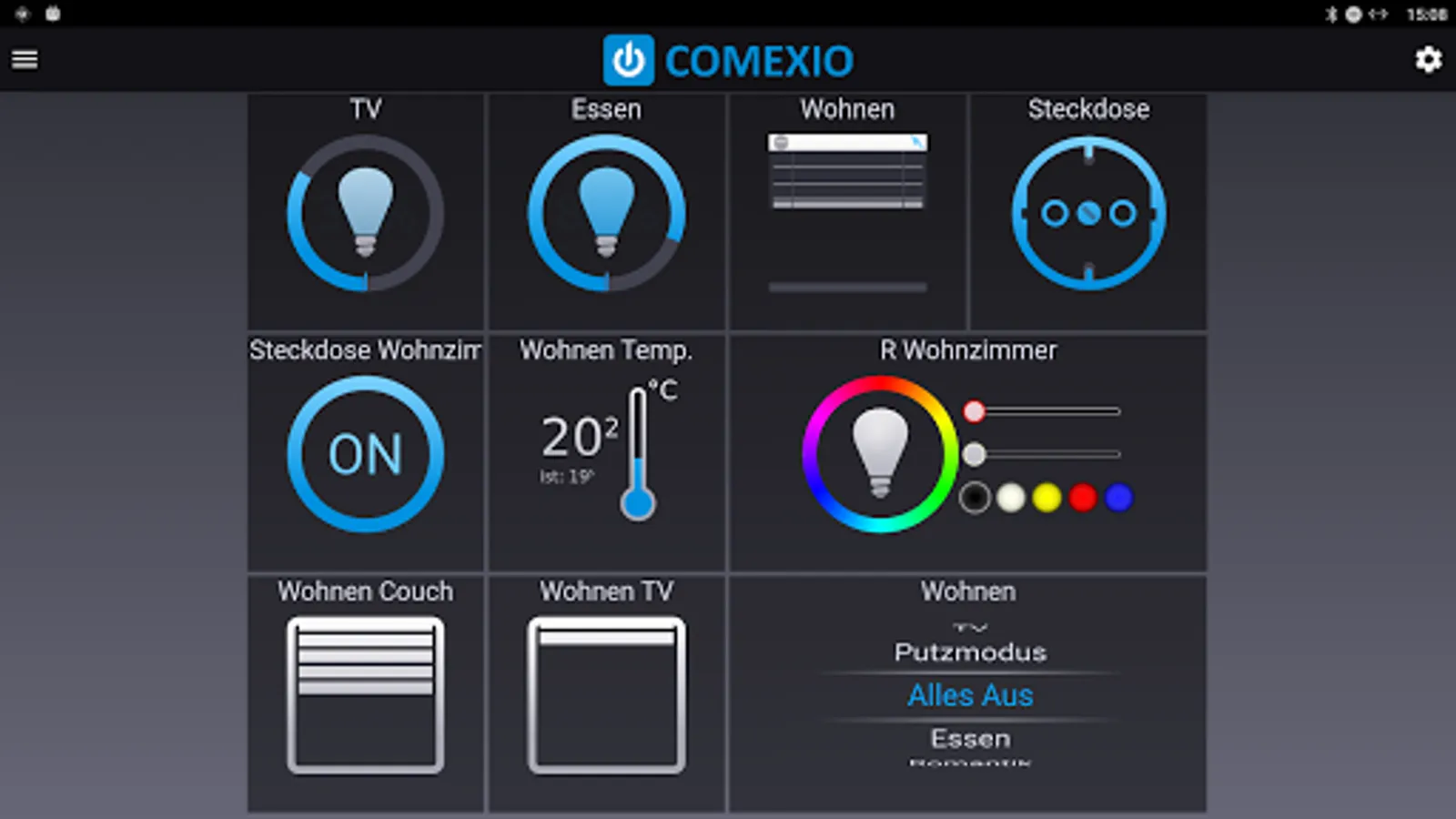 Whether at home or on the road, with the COMEXIO APP you have your home under control. You can control your shutters, select a lighting scene, regulate the heating or monitor each other embedded in your COMEXIO system function and control. This naturally also includes the recorded consumption curves or images eingebundener IP cameras. The ease of use is of course ensured by the uniform user interface across all devices.