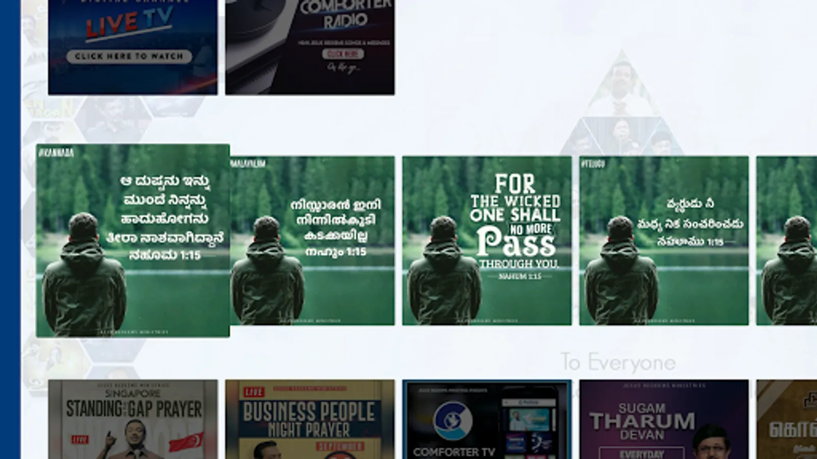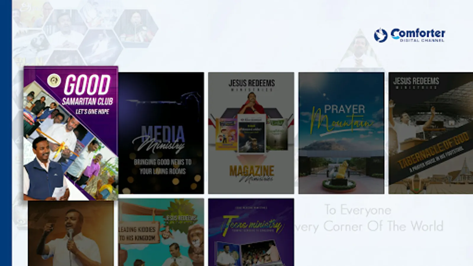 The Comforter TV., is an initiative of Jesus Redeems Ministries to Comfort every Soul around the Globe through the far reaching Digital Media Platform. We stream 24x7, the Gospel of Jesus Christ, to the multi lingual audience, covering a wide range of Indian and International Languages like Tamil, Hindi, Kannada, Telugu, Malayalam, Punjabi, English, Arabic, Mandarin (Chinese), Hebrew, etc.,. The Comforter TV is birthed from the GOD –given vision to Bro. Vincent Selva Kumar and Bro. Mohan C. Lazarus, with the sole purpose of taking Gospel to the ends of the earth and thereby preparing the nations for the Second Coming of Jesus Christ. Comforter TV proves its uniqueness by addressing the disparate situations, struggles and needs of every precious soul, assuring them hope and life and comforting them in Christ, the Eternal Comforter. We are available at www.comfortertv.com , exclusive Android App, IOS and any upcoming Digital Formats. Comforter TV dedicatedly ventures in search of every soul everywhere, doing the work of a missionary of Jesus Christ.
