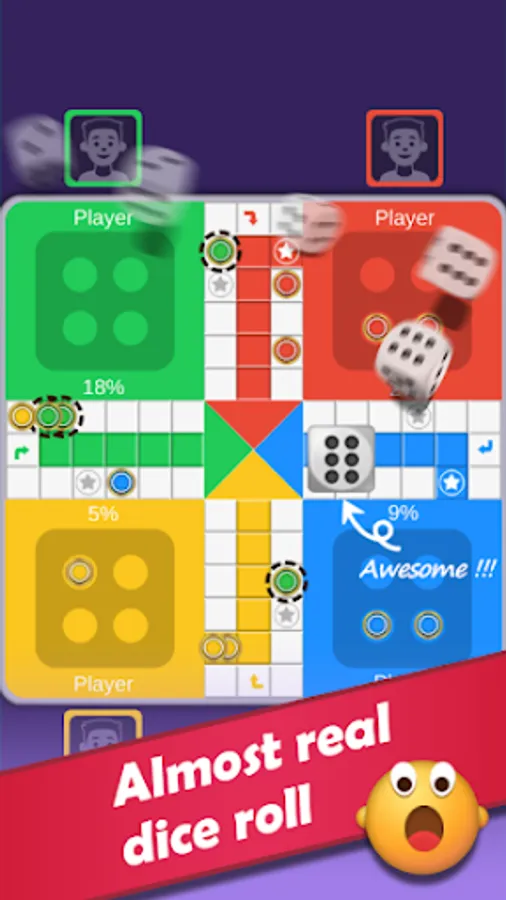 Shake the phone to roll the dice and experience the real local Ludo dice rolling animation.