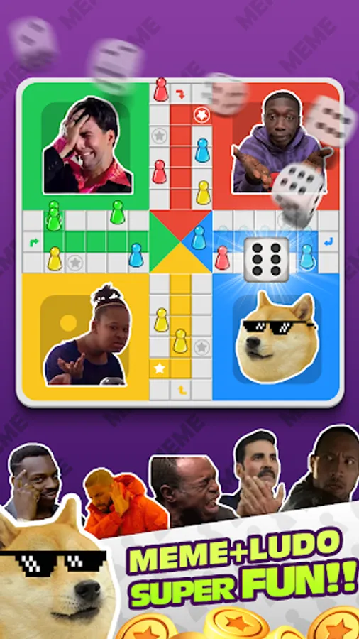 Featuring in chats. Create and share Ludo memes while having fun with Facebook friends to be Ludo star or even Ludo Superstar. Ludo Memes is the ultimate board game with fun dice rolling for you playing with friends and family!Ludo Memes supports for both 2-player and 4-player battle modes, offering a rich set of strategic skills to make your ludo play interesting and competitive. Whether you want to play in classic mode or try out the fast-paced mode, Ludo Memes has got you covered. Compete with other players, climb the ranks, and become the top Ludo star!