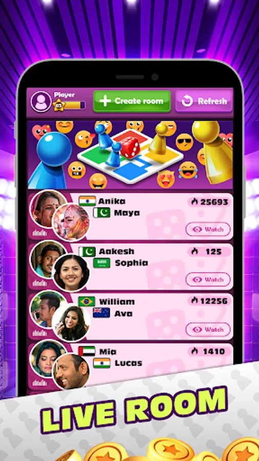 Ludo Memes has excellent chat and social features, allowing you to play with your Facebook friends or share the ludo game with others. While enjoying your ludo game play, you can go word or voice chat with other players by using ludo meme and ludo emoji. Why not making new friends during the ludo game or in chat room? Our Chat Room is the perfect place to watch and learn new ludo techniques, chat with other players, and even exchange gifts. If you like someone's gameplay, you can show your support and love by sending them gifts or cheering them on. Having fun with Ludo Memes, showing off your Ludo skills and becoming Ludo king!