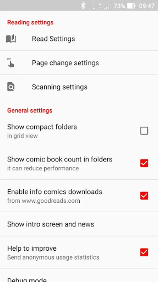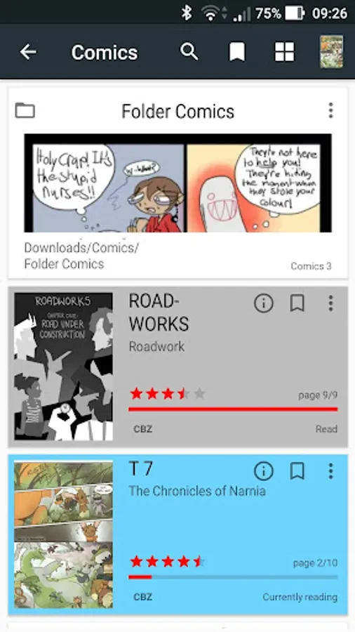 Supported formats: CBZ, CBR, RAR, ZIP, Image folders and PDF (PDF only for Android L or higher).