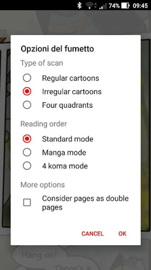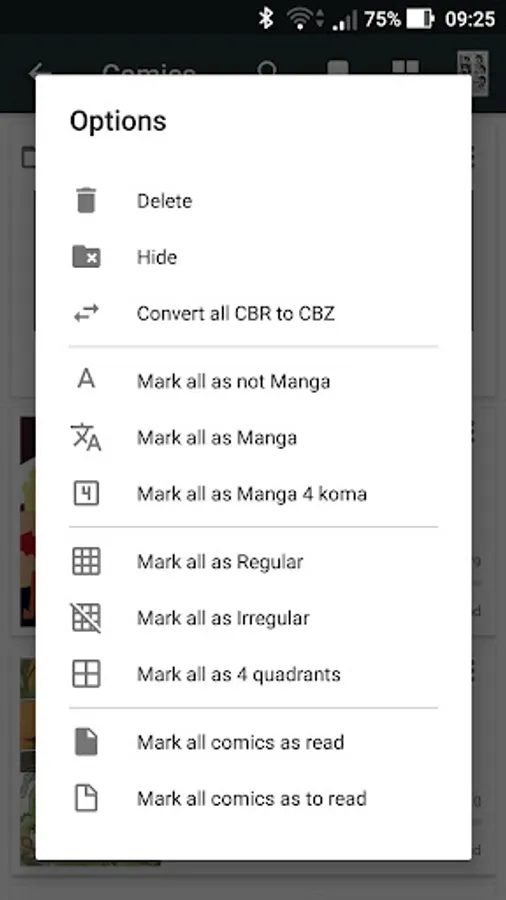 A simple and light comics viewer and Manga that analyzes the pages and allows you to view a vignette after another in full screen.
