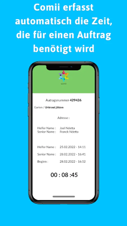 As soon as the everyday helper has arrived, the order begins to run (in terms of time). There are status reports for this. If the job is done, the everyday helper has to click on a status "done". You will receive a message about this in your APP.