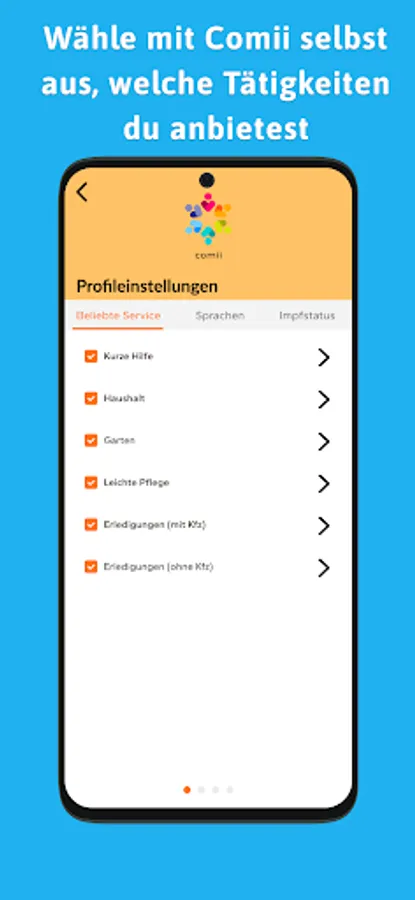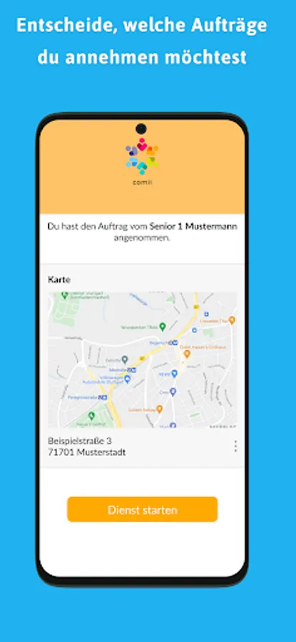 With the Comii everyday helper APP you get access to seniors who are looking for help. They can request help directly from everyday helpers in their area (approx. 10 km) via the APP Comii Senior, which was specially developed for seniors.