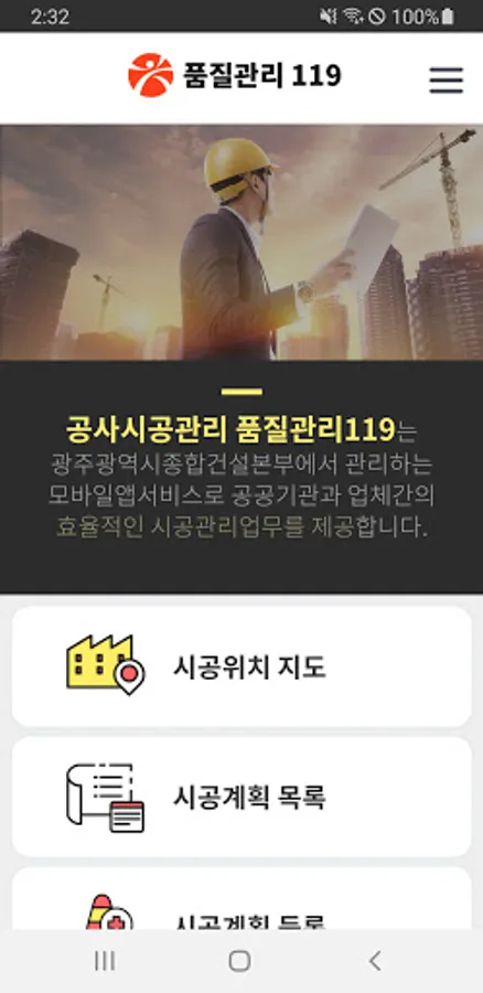 Gwangju Metropolitan City Hall General Construction Headquarters Quality Test Division provides a mobile app that manages construction schedules for efficient construction site operation through mobile.