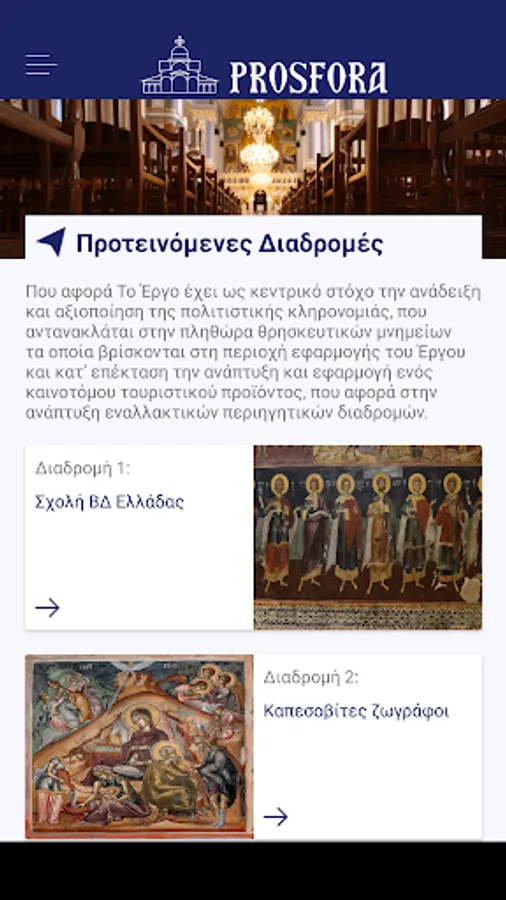 Through the application the visitor has access to the Pilgrimage routes, the information (digital cultural content) associated with each Pilgrimage point, as well as access to information regarding local businesses, products and services in the area. In addition the visitor has the opportunity to create alternative Pilgrimage routes, utilizing the plethora of Pilgrimage points that will be available.