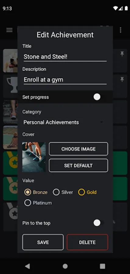 3. Every achievement has a value: Bronze, Silver, Gold or Platinum! You decide how valuable each of your achievements is.