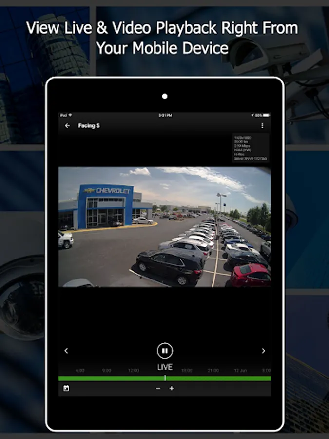 *SMART VIEW* - View live thumbnails, live video, and recorded video with adjustable quality settings and pinch-to-zoom operation.