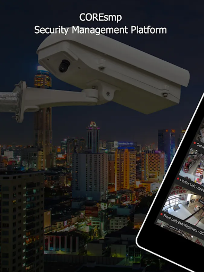 The Core SMP (stylized as COREsmp) mobile app allows users to connect to, view, search and control nearly any* IP camera or access control system over both Wifi and cellular connections. The Core SMP mobile app is an integral member of the larger family of COREsmp applications including desktop, browser and mobile.