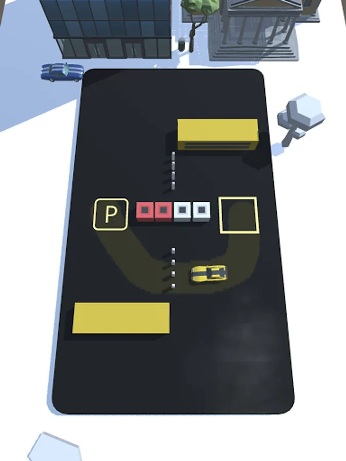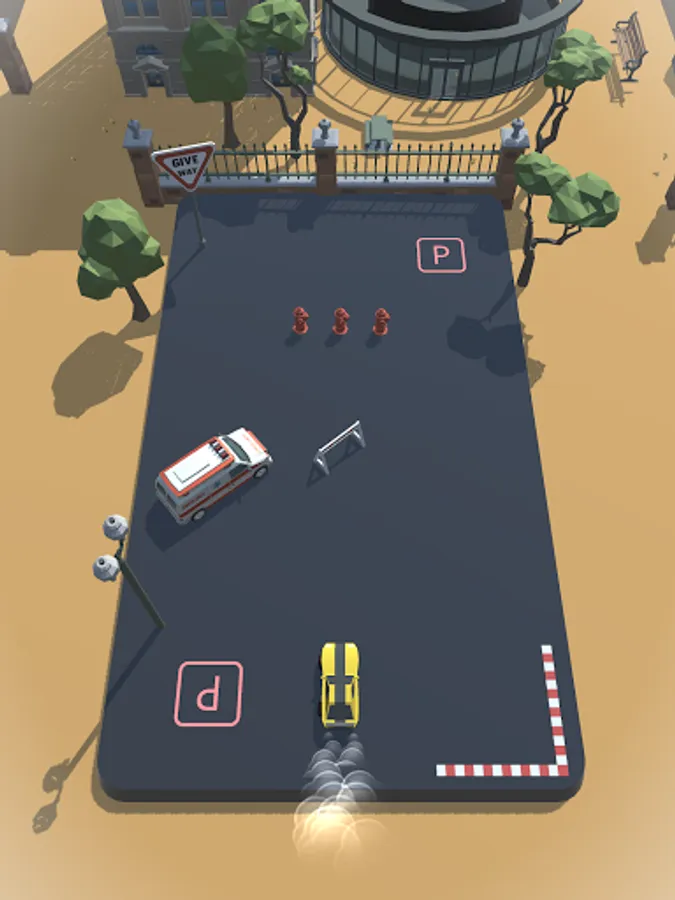 -Draw a line with your finger and guide the car to the parking. Watch out as you may hit other cars!