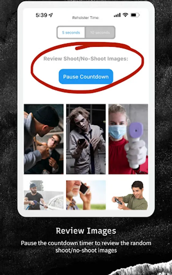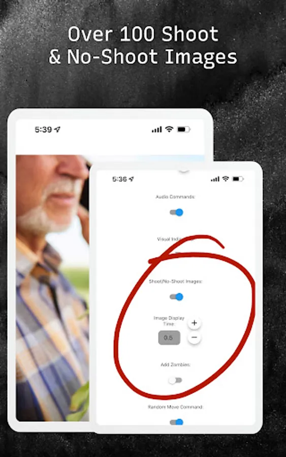 NOW WITH SHOOT/NO-SHOOT DISCRETIONARY IMAGES! The app will choose a random shoot or no-shoot image from a bank of over 100 images. Want to add some flare to your training session? Enable zombies and the app will add a bank of zombie images to randomly choose from.