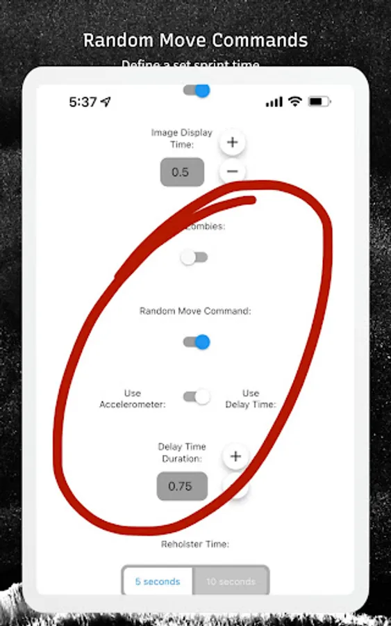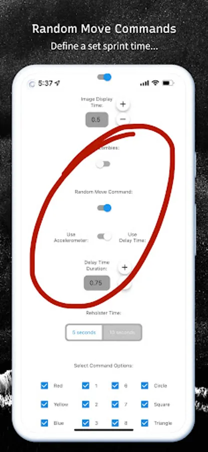 With our latest update, you can now add random MOVE commands, requiring the user to sprint, run, jog, or gallop to their next position. Once the movement stops (or slows down) the app will give another random command. Using a tablet and not your phone? No problem, simply choose the timer option instead and input the amount of time that you would like to move before the random command is given.