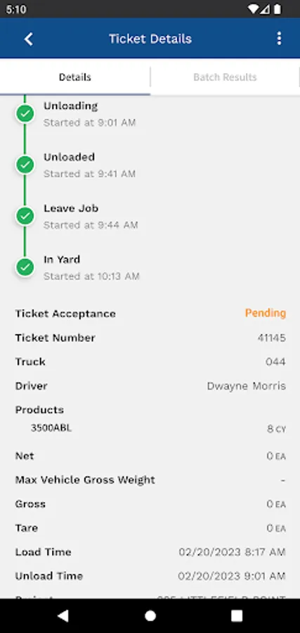 Batch mix details