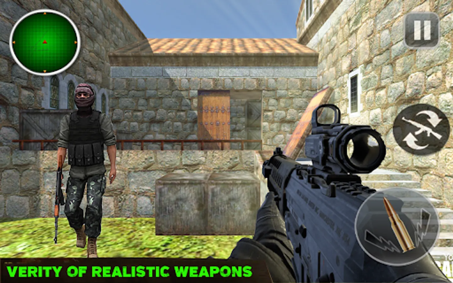 In this front-line strike games, you have to kill all your enemy. All the weapons must be used in order to complete all missions of this gun strike game. In this Real commando shooting 3D game you will be awarded money as reward of completing each mission in this commando gun shooting games. In this action games different weapons are available for purchase from inventory using awarded money in this counter-attack special forces game. Aim for the survival till end to achieve victory in FPS shooting games. Shotgun levels are also available to play in this free gun games so you can play as shotgun games. To survive in this action games, you have to keep your health up while fighting with terrorists. If you are fan of battlefield gun games then this game is for you. All missions in this gun shooting games are designed to increase interest and enjoy the free shooting games offline. Plan your attack in this fps encounter shooting game as all enemy terrorists are heavily skilled so make estimate before continue in this game of adrenaline HD graphics.
