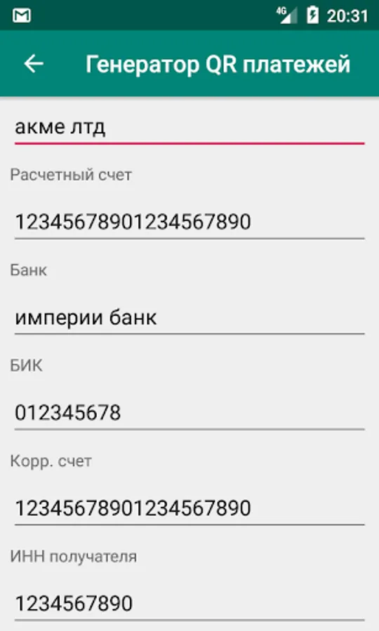 The QR code generator for QR code payments in the fast payment system (SBP) and receipts (GOST) includes the minimum set of attributes required to generate a QR code for payment from a mobile bank.