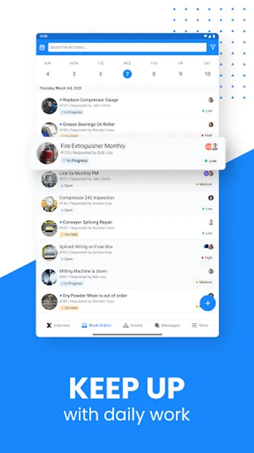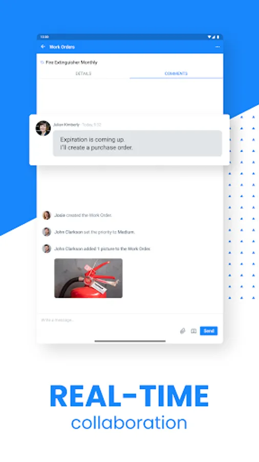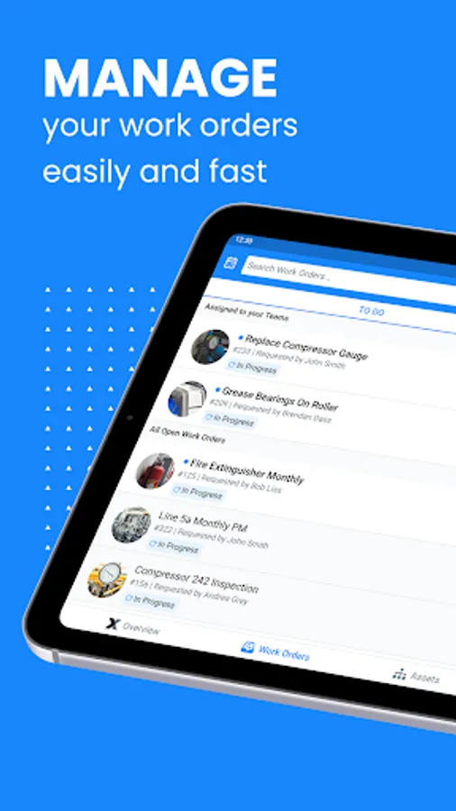 Perfect for teams looking to boost communication and get instant mobile/desktop status updates between technicians, maintenance workers, and managers.
