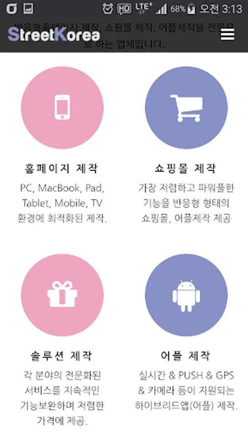 각 분야의 업종에 맞는 기능들을 반응형홈페이지 기반으로 어플제작 까지 전문화된 서비스를 지속적인 기능보완하며 저렴한 가격에 제공합니다.