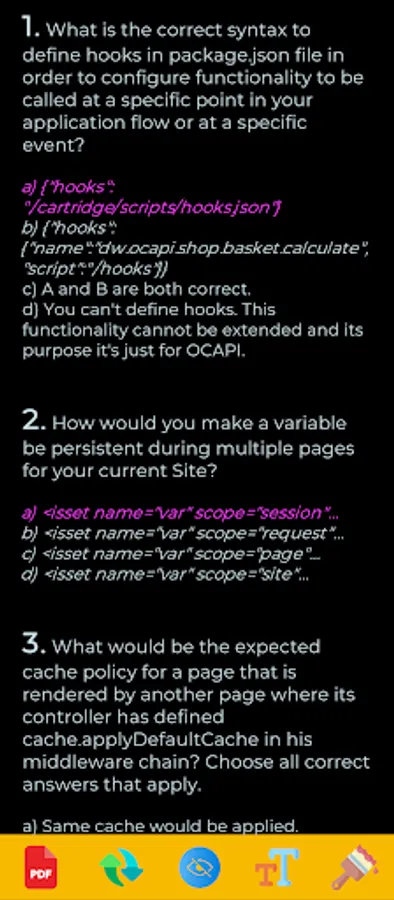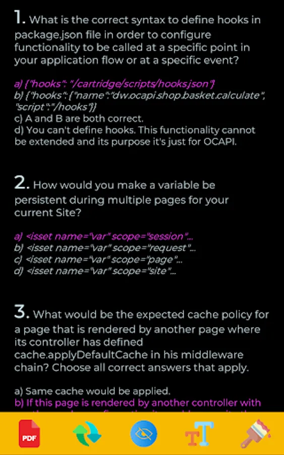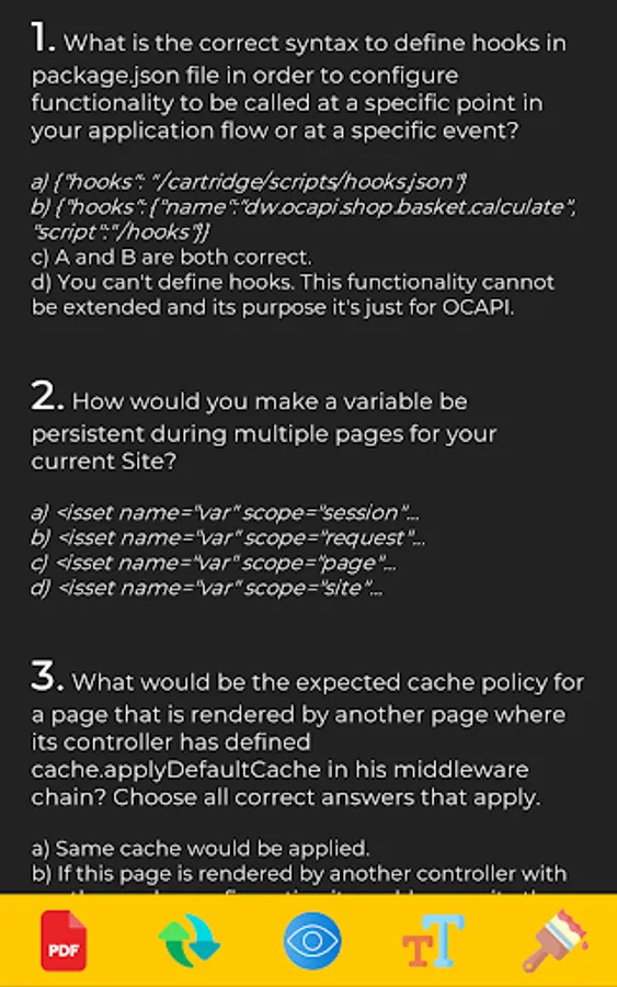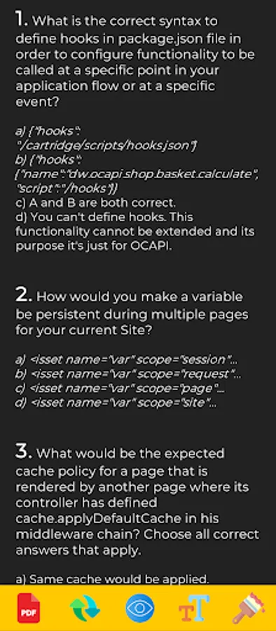 If you still are not confident about performing the purchase, we recommend you to visit our webpage and sign up the preview form in order to receive a B2C Commerce exam dump preview with some real random questions and answers you will find in this application after purchasing the SFCC Exam questions App.