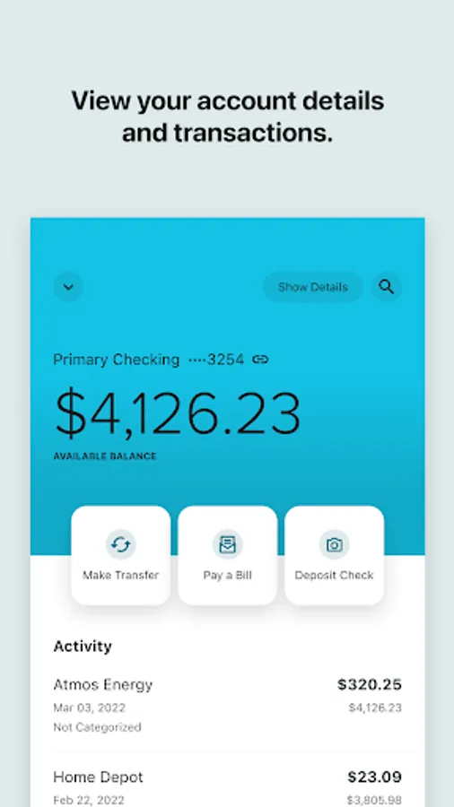 View Account Balances and Available Balances – All amounts are quickly displayed in real-time and are easy to read. You can also access transaction details.