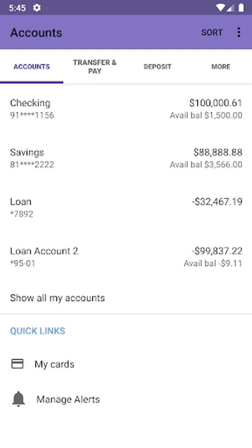 ** Online customers must first setup transfer and bill pay accounts prior to using these features