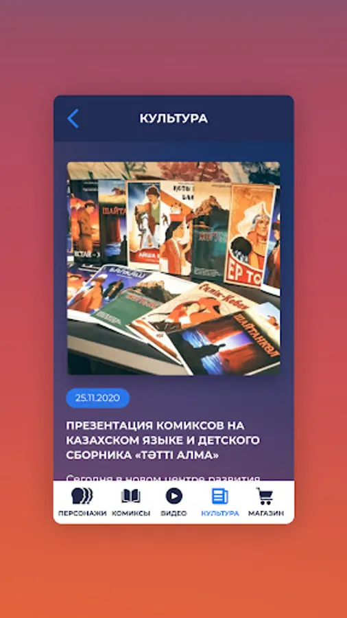 Comics "Shaitankol". In ancient times, the daughter of the rich man Sulushash loved Altai, the son of a poor man and a maidservant. Not having received the blessing of the obstinate father, the lovers, along with their mutual friend Kaisar, fled from their native home.