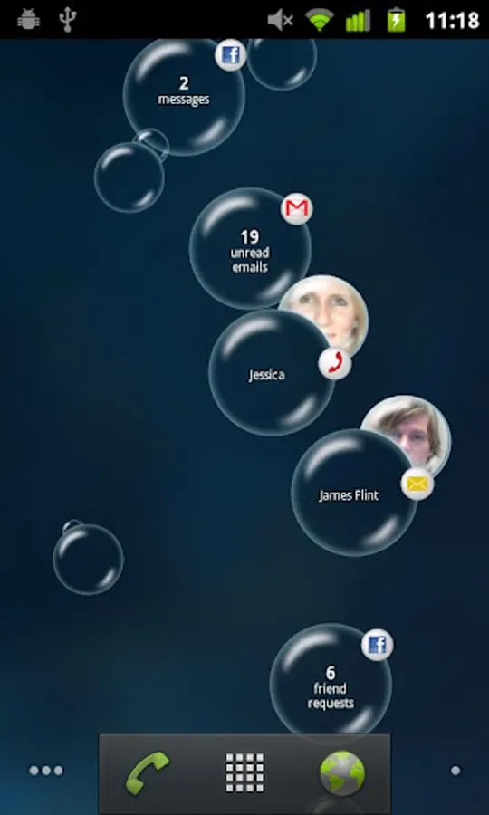 Get your notifications displayed in beautiful and playful bubbles on your homescreen.